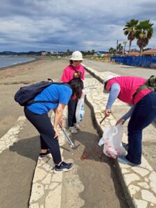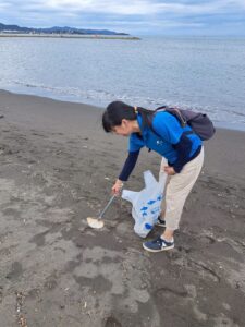 砂浜では、夏の観光シーズンを終えたあとの花火の残骸やプラスチックごみが多く見られ、カラフルなストローやパッケージの切れ端などを一つひとつ回収しました。