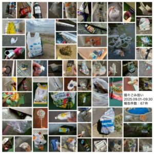9月1日〜30日の期間には、個人でのごみ拾い報告が67件寄せられました。