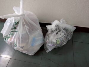 ゴミの量:45Lゴミ袋×3袋 (燃えるゴミ2, 燃えないゴミ1)