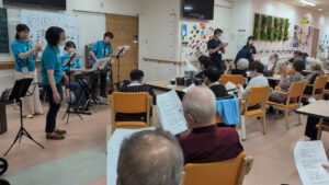 また、そのあとの「高原列車は行く」でも、利用者さんが途中で自ら前に出て歌ってくださり、盛り上がりました🙌