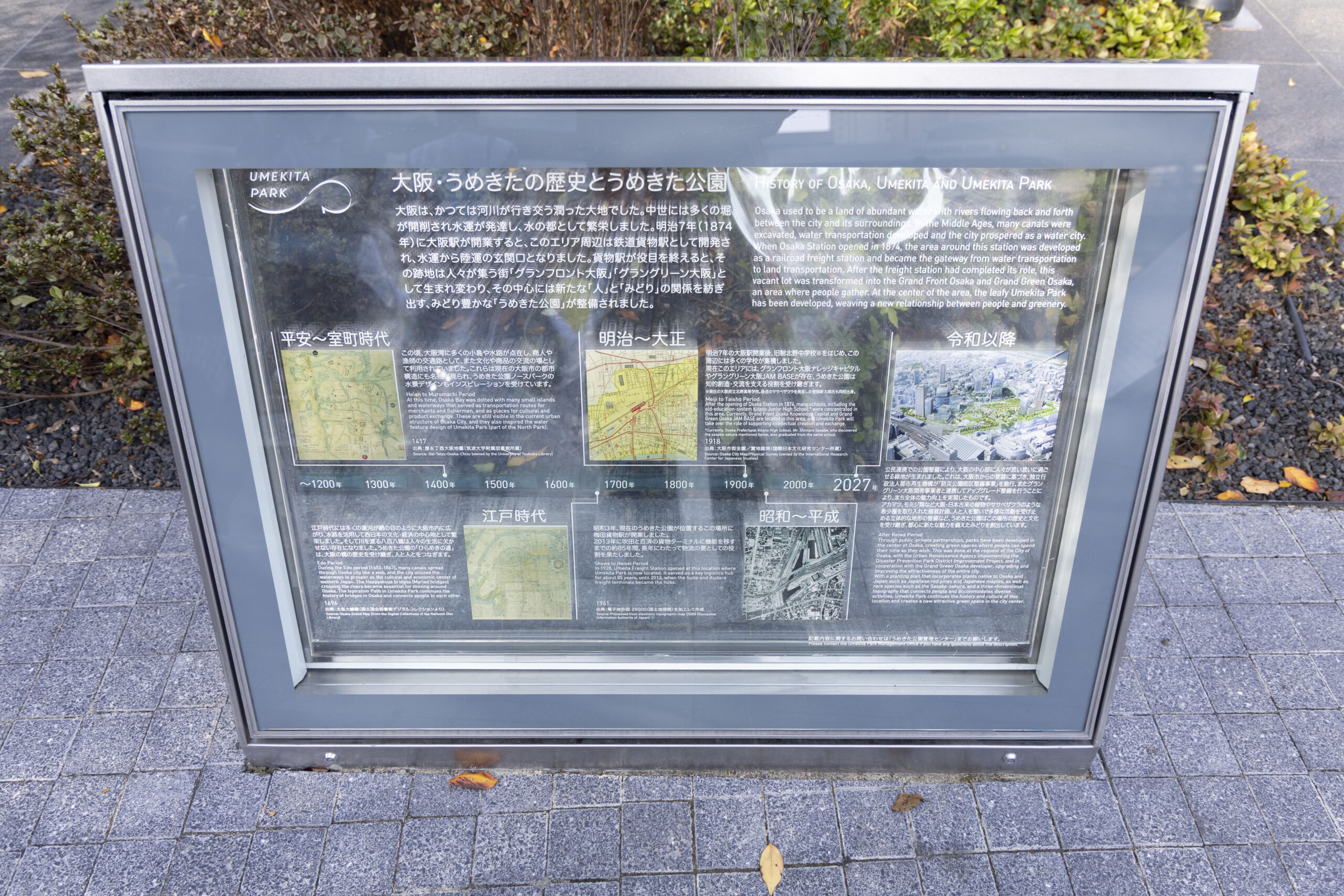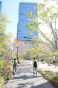 まだ万博の余韻が残っている大阪です。今回は、大阪駅周辺の最近再開発された場所、うめきたグリーンプレイスで活動しました。