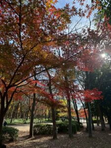 大阪城公園はまだ紅葉が残っており、晴れた空とマッチしてとてもキレイな自然の景色の中で活動できて気持ちがよかったです。