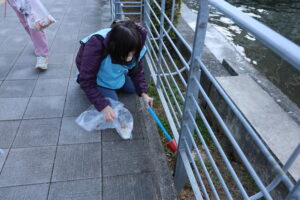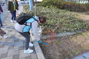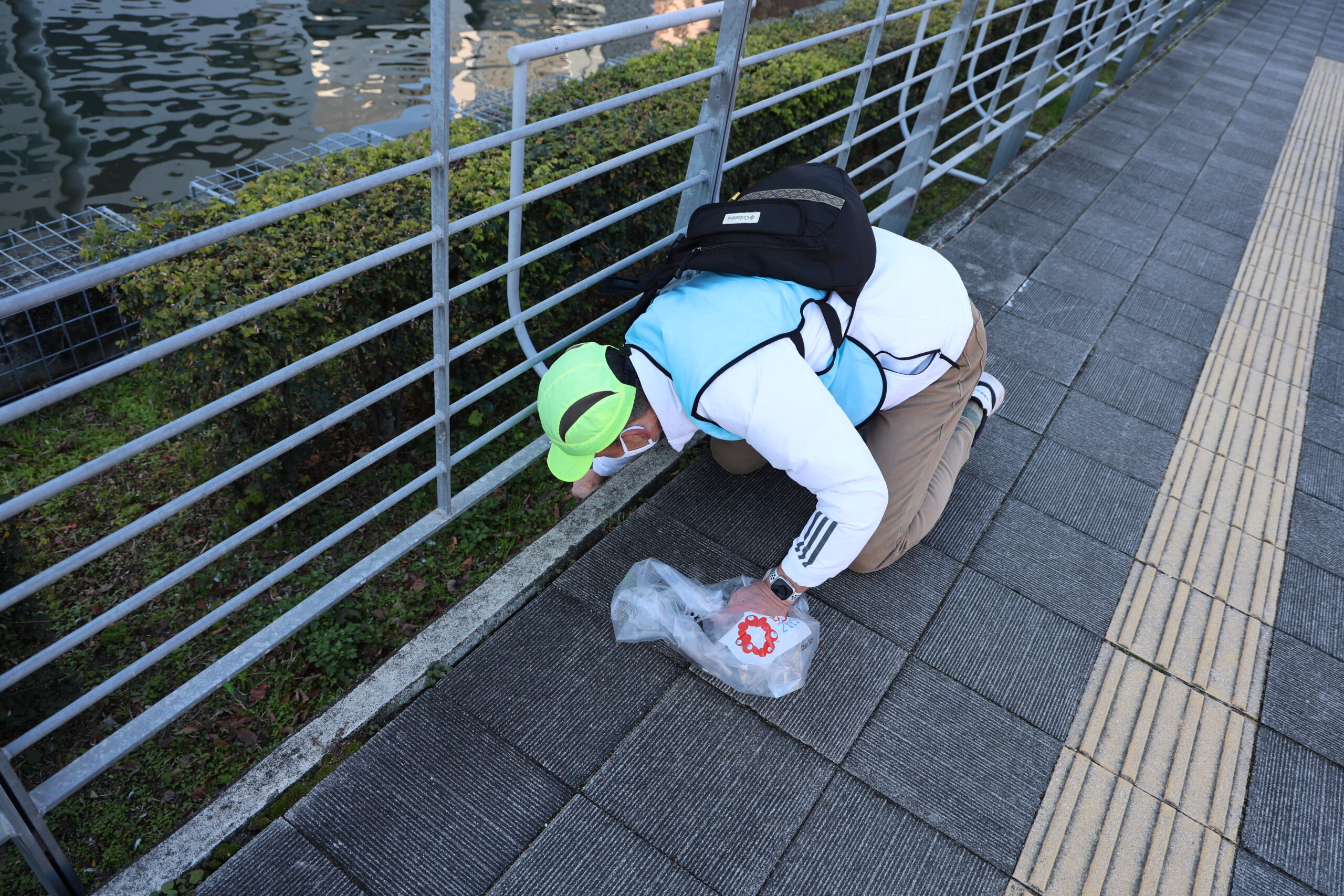 ふだんは目につきにくい溝の下などに落ちているゴミも手を伸ばしてひろいました。